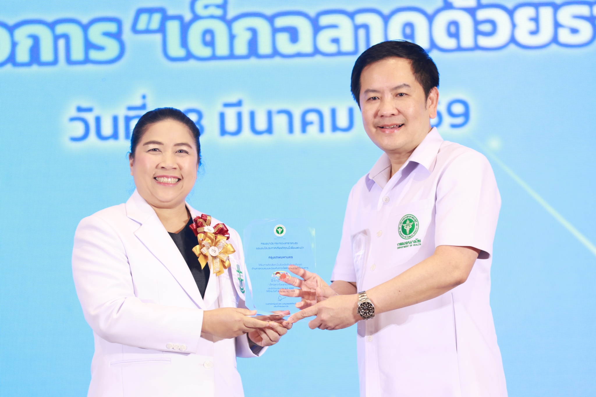 วันที่ 18 มีนาคม 2569 นายแพทย์ชลพันธ์ ปิยถาวรอนันต์ นายแพทย์ชำนาญการพิเศษ ปฏิบัติหน้าที่ผู้อำนวยการสถาบันพัฒนาสุขภาวะเขตเมือง นำทีมกลุ่มพัฒนาสุขภาวะสตรี เด็กปฐมวัย และครอบครัว เข้าร่วมประชุมและแสดงความยินดีกับสำนักอนามัย กรุงเทพมหานคร ที่ได้รับโล่รางวัลพื้นที่ดีเด่นด้านการควบคุมและป้องกันภาวะโลหิตจาง ภายใต้โครงการ “เด็กฉลาดด้วยธาตุเหล็ก” ประจำปีงบประมาณ 2568 ในงานวิชาการส่งเสริมสุขภาพและอนามัยสิ่งแวดล้อมแห่งชาติ ครั้งที่ 18 ณ โรงแรมมิราเคิล แกรนด์ คอนเวนชั่น เขตหลักสี่ กรุงเทพมหานคร