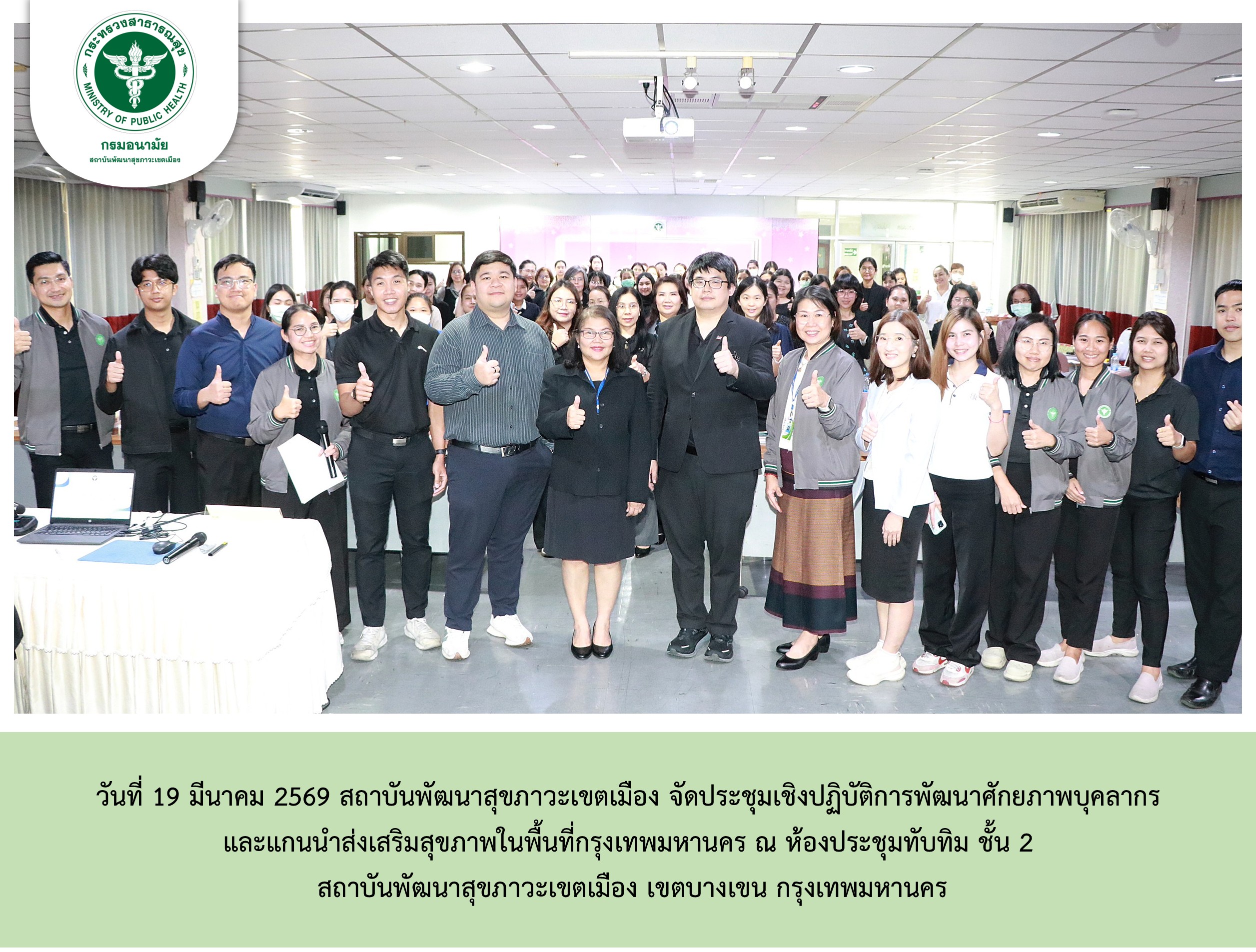 นที่ 19 มีนาคม 2569 สถาบันพัฒนาสุขภาวะเขตเมือง จัดประชุมเชิงปฏิบัติการพัฒนาศักยภาพบุคลากร และแกนนำส่งเสริมสุขภาพในพื้นที่กรุงเทพมหานคร ณ ห้องประชุมทับทิม ชั้น 2 สถาบันพัฒนาสุขภาวะเขตเมือง เขตบางเขน กรุงเทพมหานคร