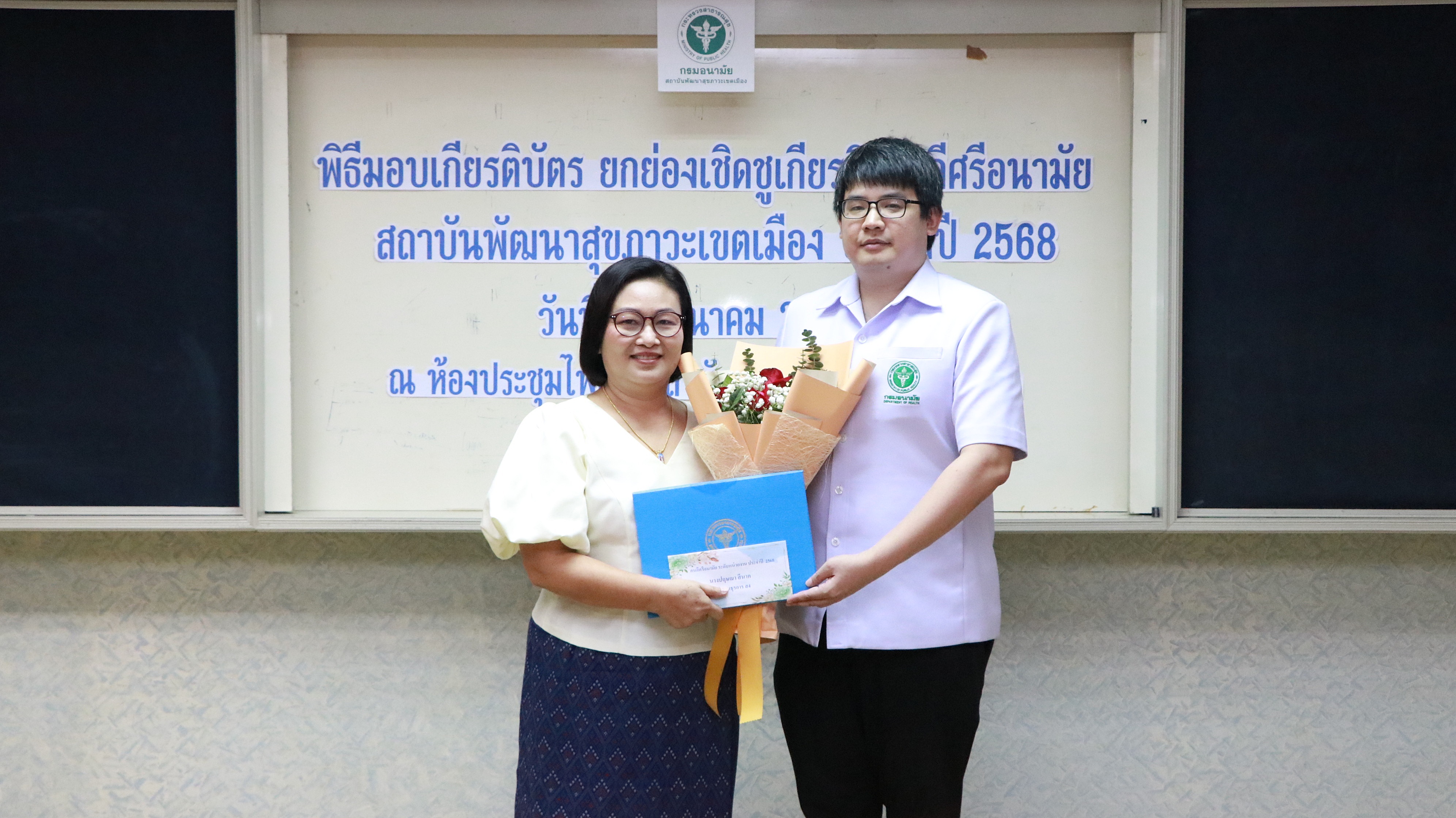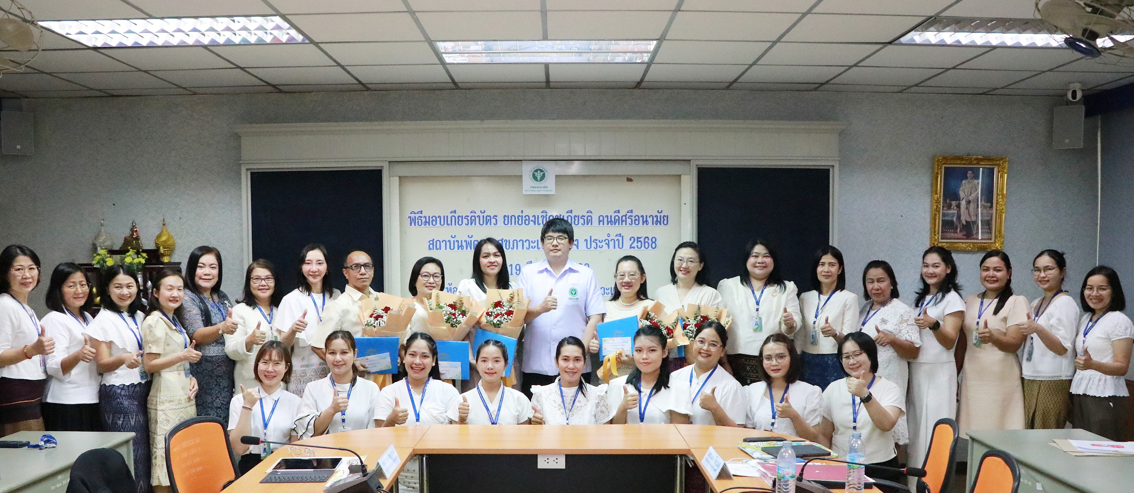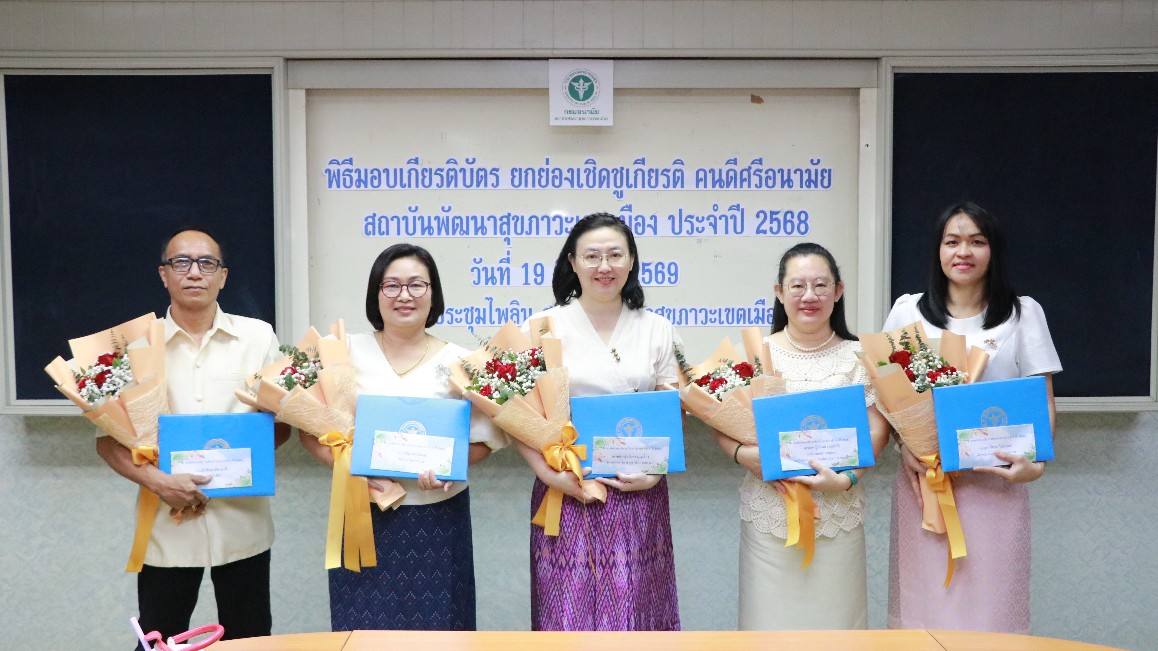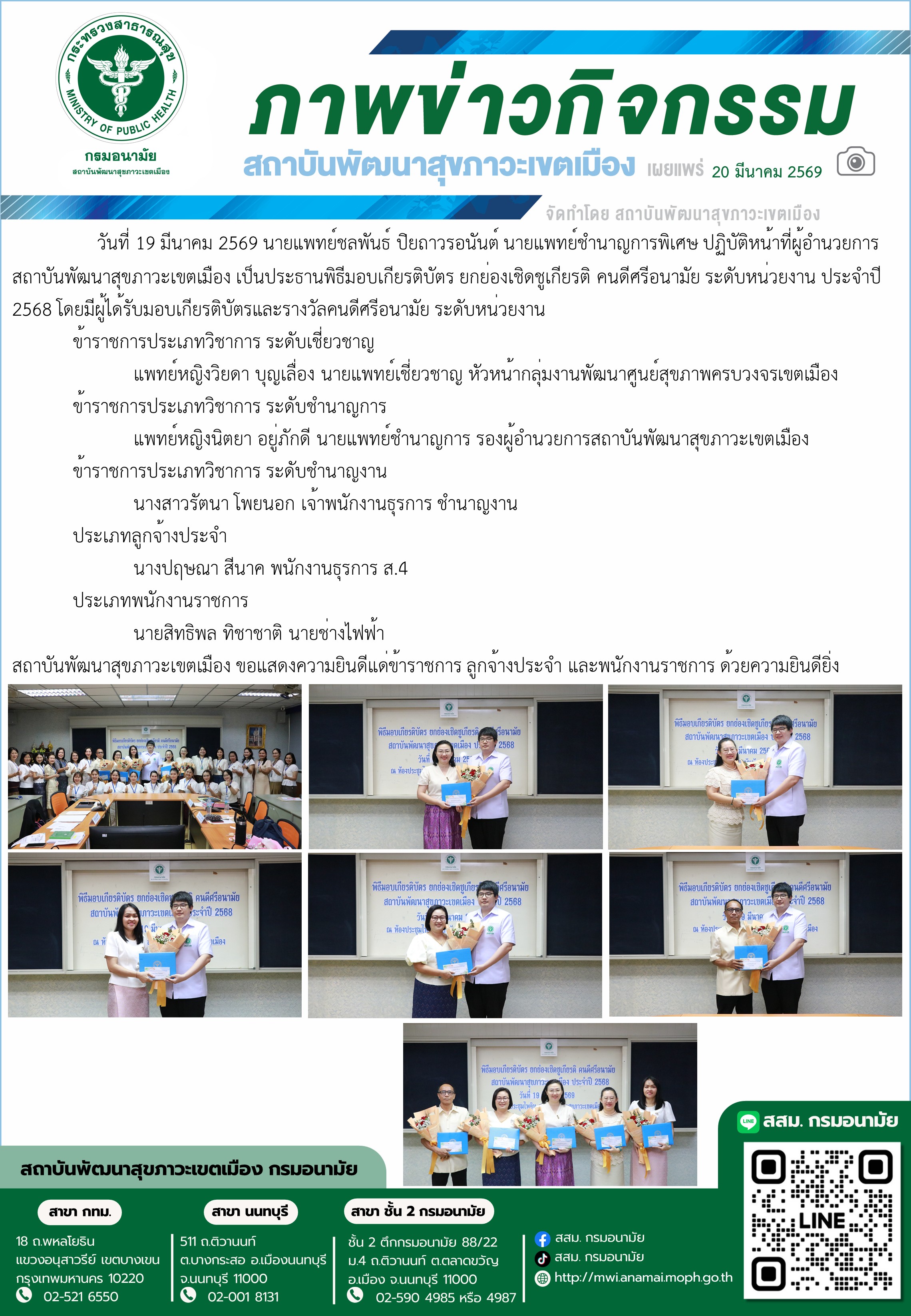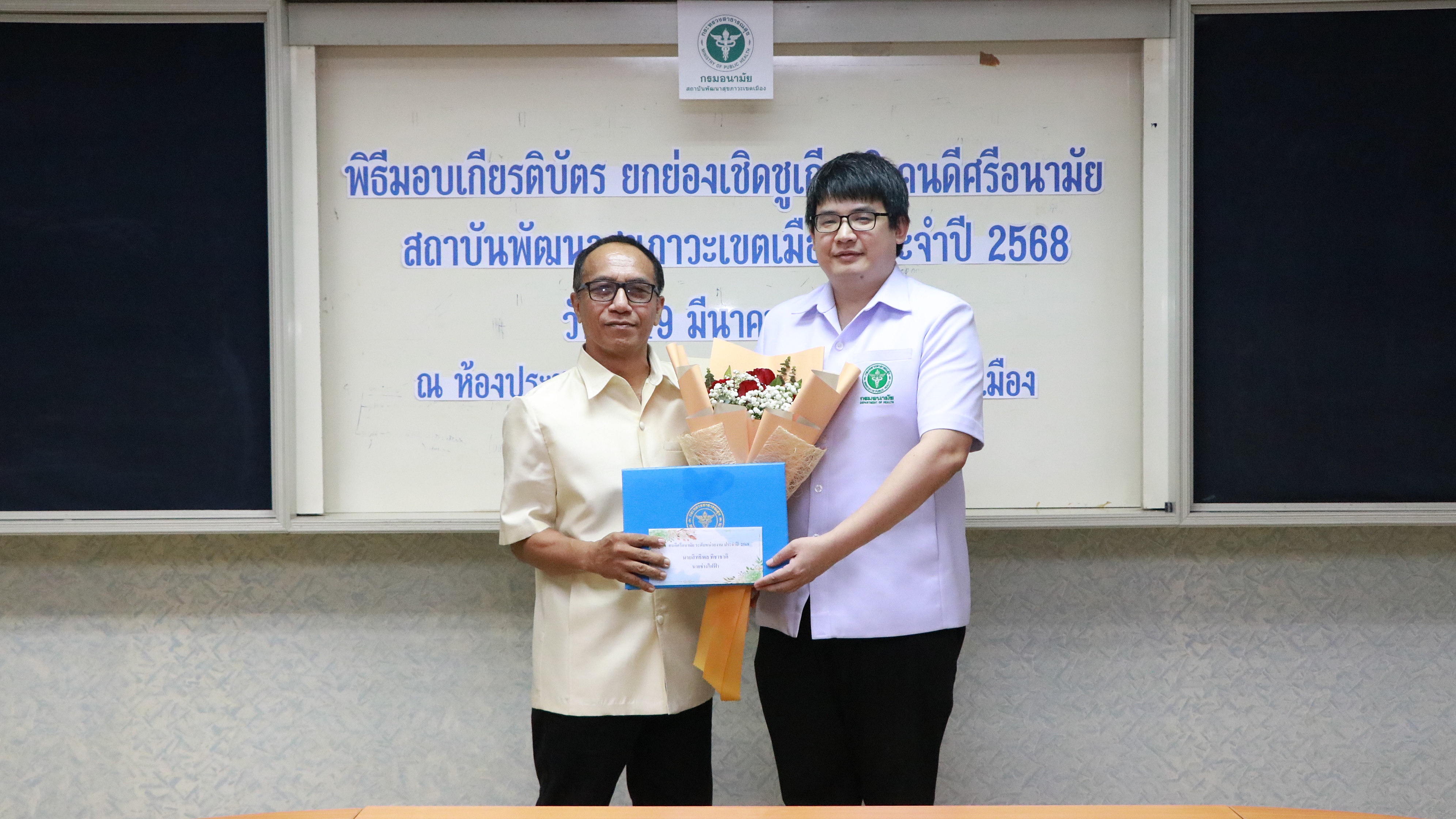 นที่ 19 มีนาคม 2569 สถาบันพัฒนาสุขภาวะเขตเมือง จัดพิธีมอบเกียรติบัตร ยกย่องเชิดชูเกียรติ คนดีศรีอนามัย ระดับหน่วยงาน ประจำปี 2568 ในการประชุมคณะกรรมการบริหารสถาบันพัฒนาสุขภาวะเขตเมือง ณ ห้องประชุมทับทิม ชั้น 2 สถาบันพัฒนาสุขภาวะเขตเมือง
