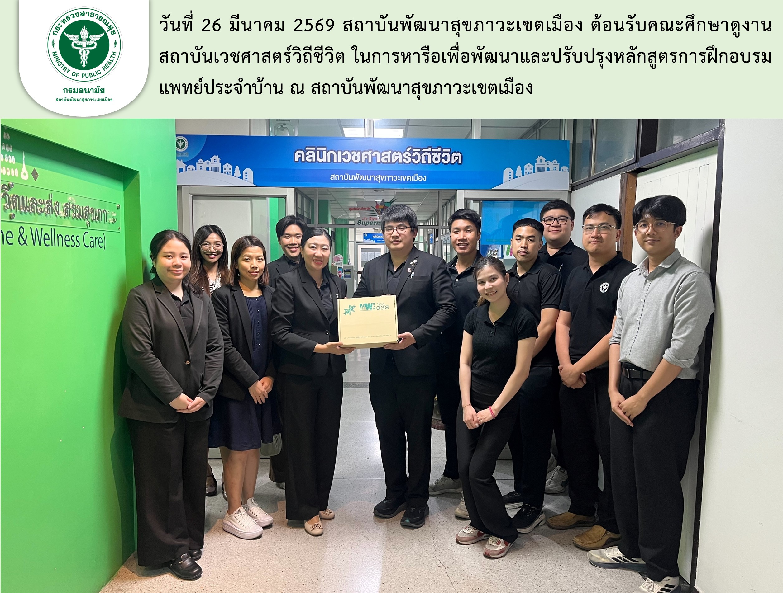นที่ 26 มีนาคม 2569 สถาบันพัฒนาสุขภาวะเขตเมือง ต้อนรับคณะศึกษาดูงานสถาบันเวชศาสตร์วิถีชีวิต ในการหารือเพื่อพัฒนาและปรับปรุงหลักสูตรการฝึกอบรมแพทย์ประจำบ้าน ณ สถาบันพัฒนาสุขภาวะเขตเมือง