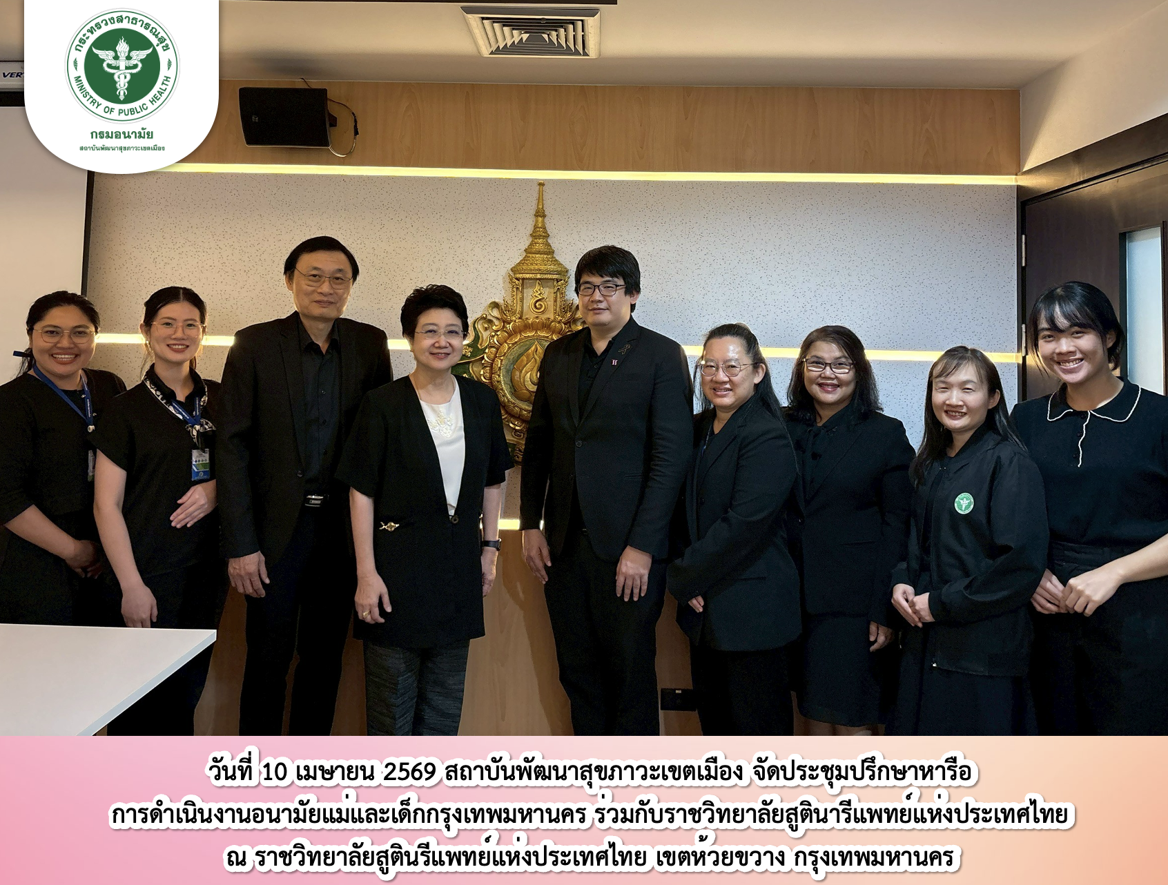 นที่ 10 เมษายน 2569 สถาบันพัฒนาสุขภาวะเขตเมือง จัดประชุมปรึกษาหารือการดำเนินงานอนามัยแม่และเด็กกรุงเทพมหานคร ร่วมกับราชวิทยาลัยสูตินารีแพทย์แห่งประเทศไทย ณ ราชวิทยาลัยสูตินรีแพทย์แห่งประเทศไทย เขตห้วยขวาง กรุงเทพมหานคร