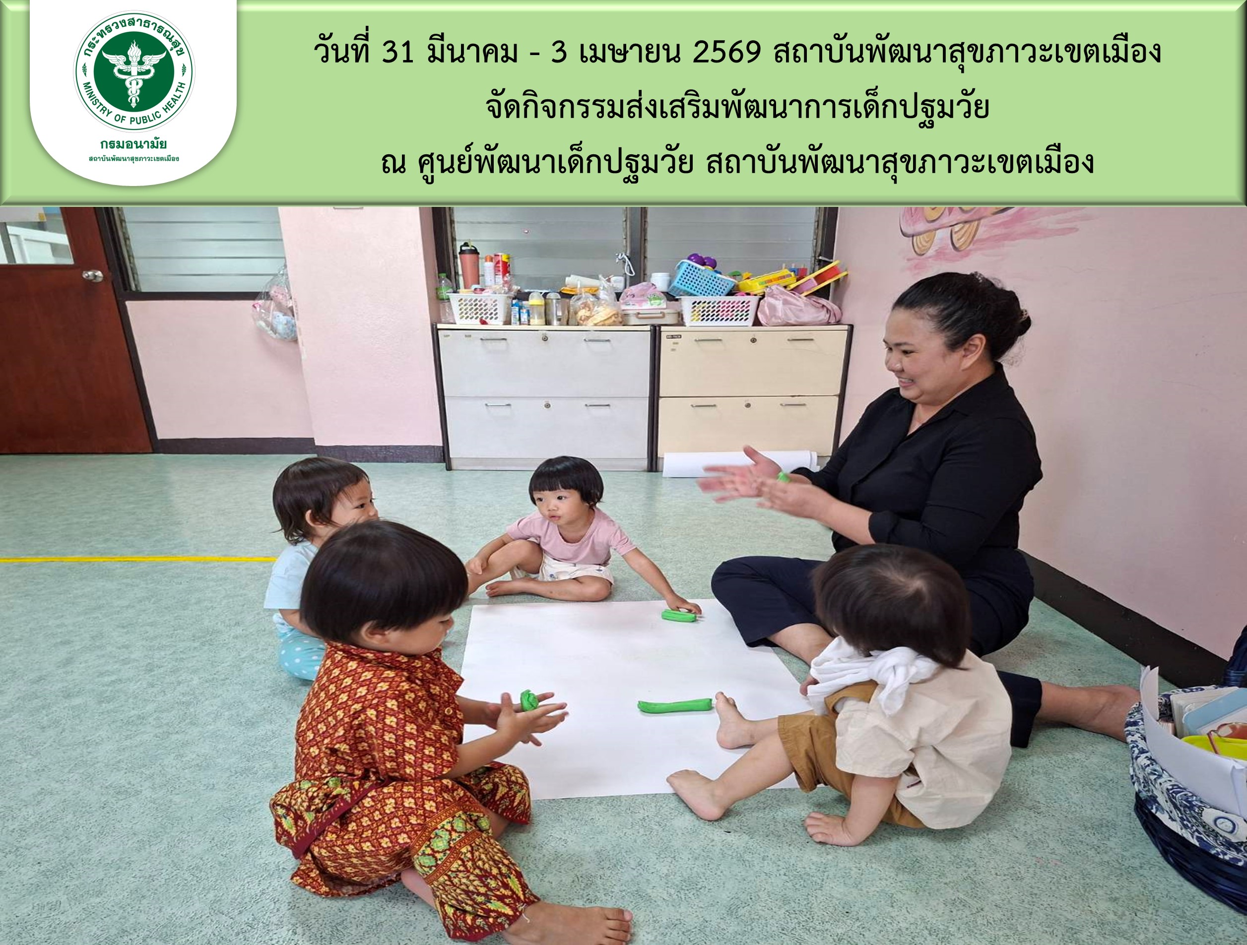 นที่ 31 มีนาคม - 3 เมษายน 2569 สถาบันพัฒนาสุขภาวะเขตเมือง จัดกิจกรรมส่งเสริมพัฒนาการเด็กปฐมวัย ณ ศูนย์พัฒนาเด็กปฐมวัย สถาบันพัฒนาสุขภาวะเขตเมือง