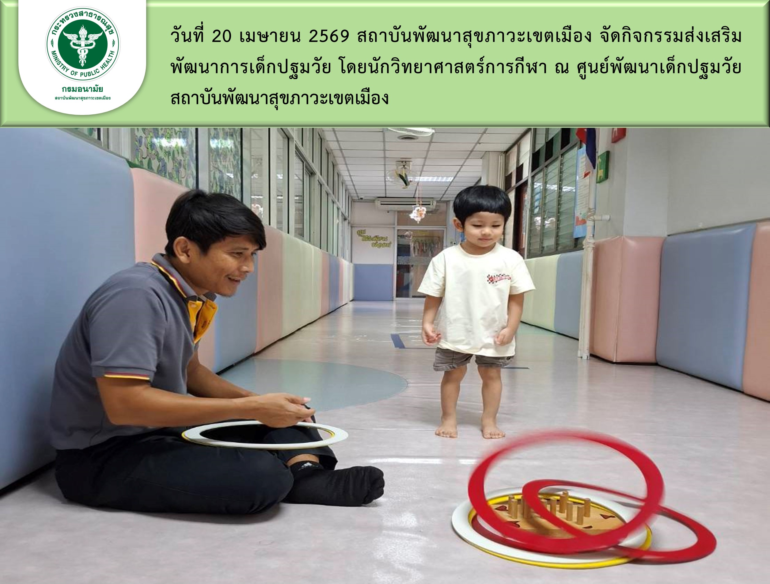 นที่ 20 เมษายน 2569 สถาบันพัฒนาสุขภาวะเขตเมือง จัดกิจกรรมส่งเสริมพัฒนาการเด็กปฐมวัย โดยนักวิทยาศาสตร์การกีฬา ณ ศูนย์พัฒนาเด็กปฐมวัย สถาบันพัฒนาสุขภาวะเขตเมือง