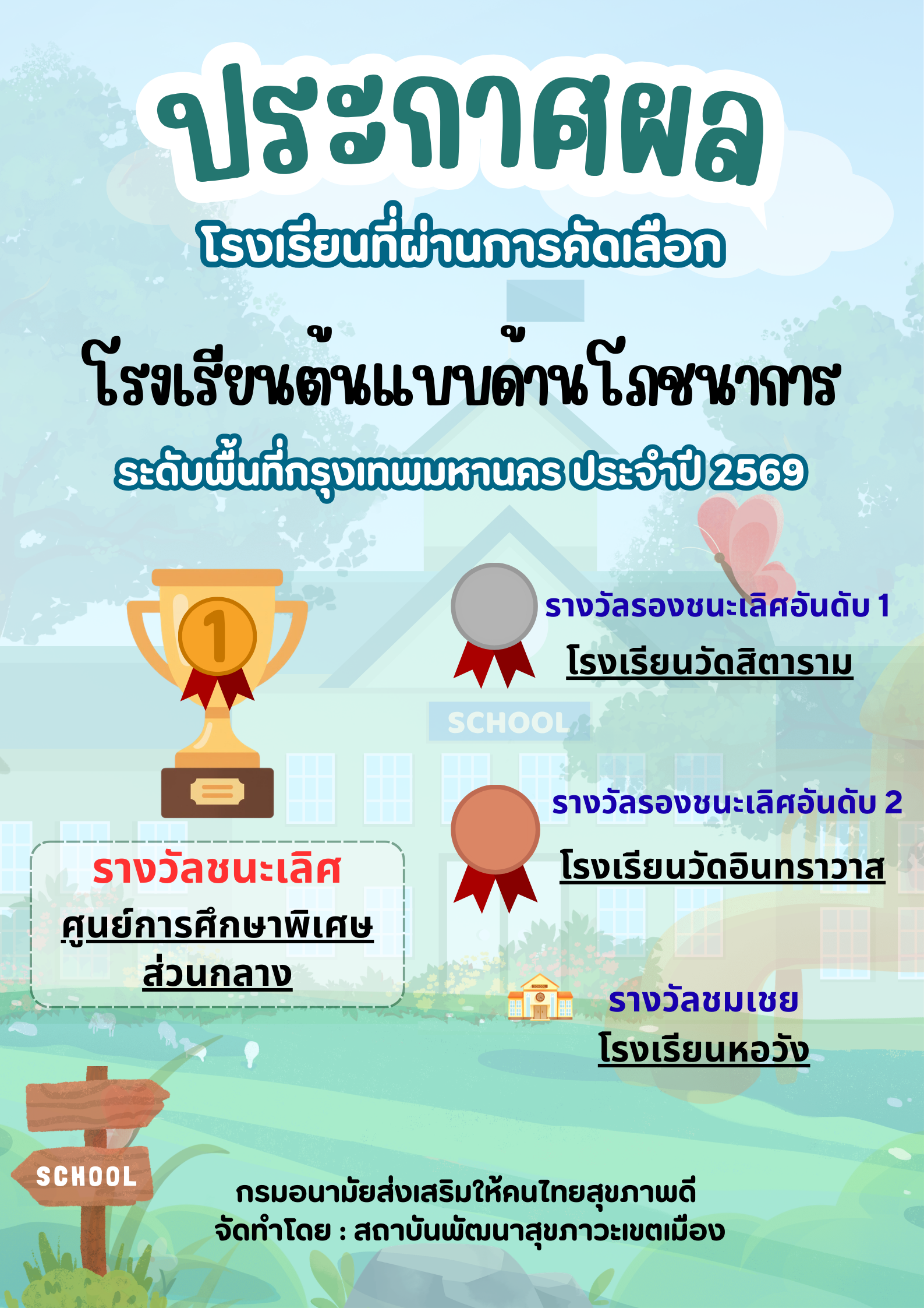ระกาศผลคัดเลือกโรงเรียนต้นแบบด้านโภชนาการ ระดับพื้นที่กรุงเทพมหานคร ประจำปี 2569